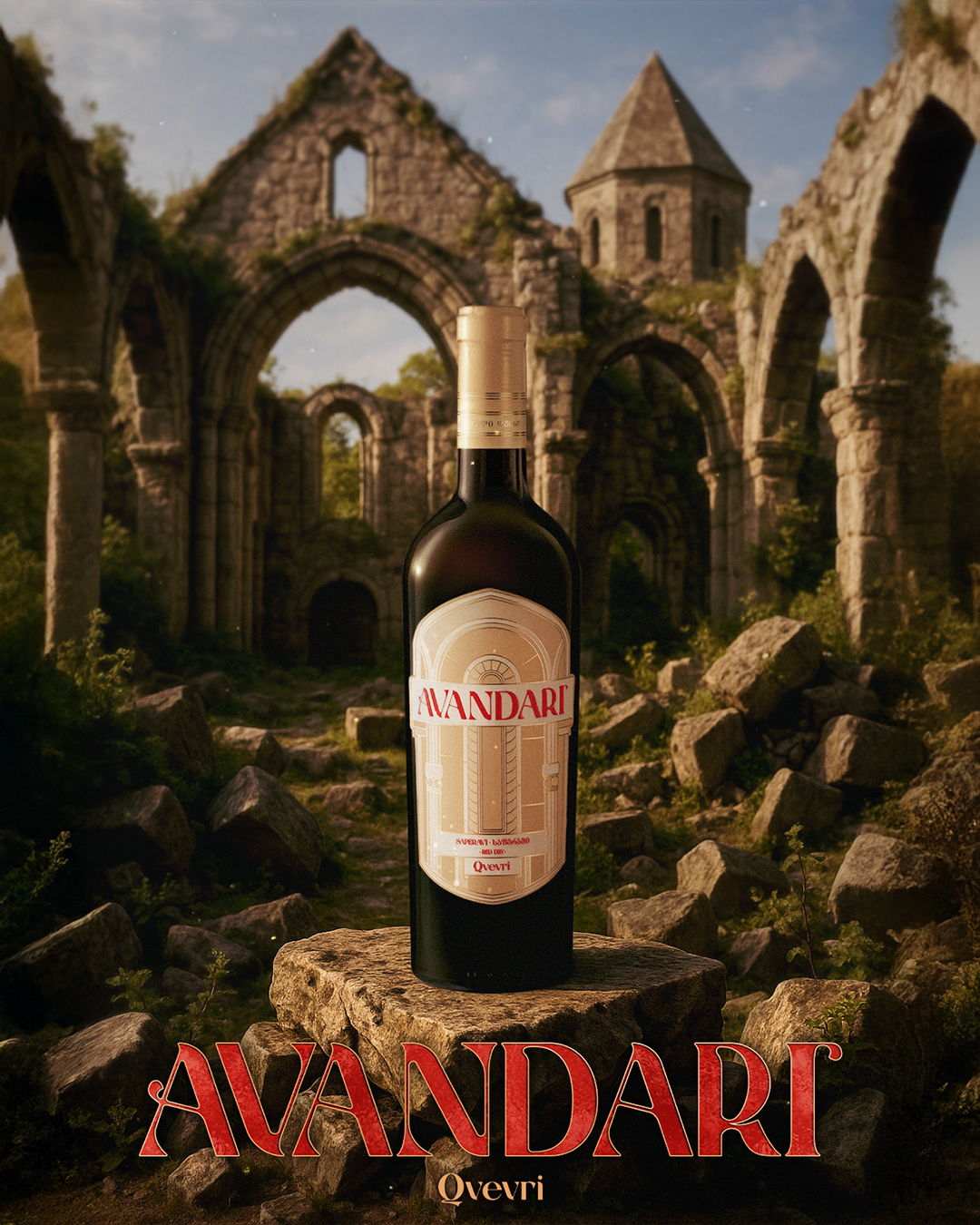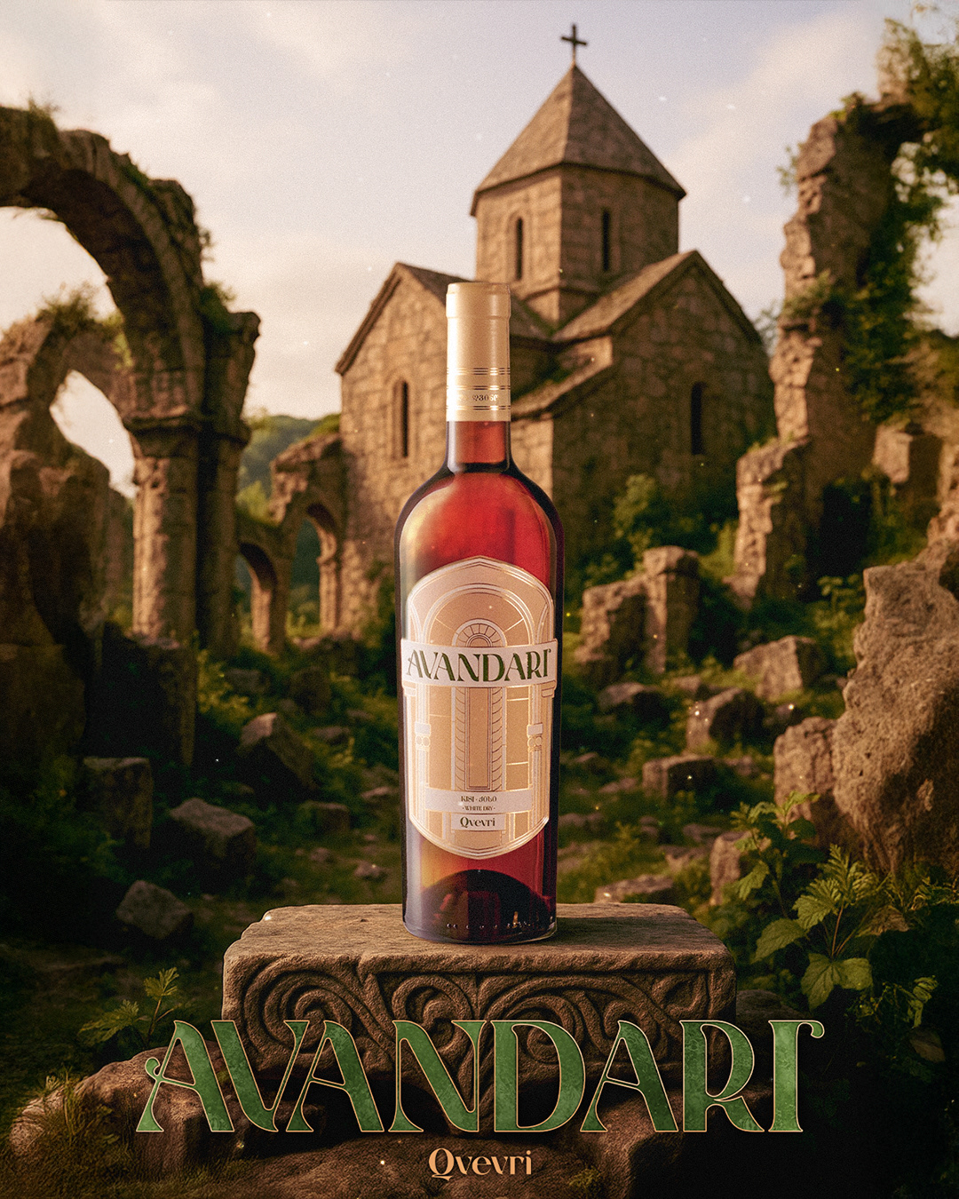 While its counterparts are more adventurous and curious, Avandi (which means “a rule” in Georgian) plays by the rules to perfection. It’s subtle, it’s refined, it’s seamless and exquisite. To highlight this tried and tested perfection and compliment the shape of the bottle - we used architectural arches that held up cultural heritage for centuries. For Georgian wines, made with a more modern, European twist - We used Romanesque pointed arches, and for Georgian wines, made the traditional way - in a Qvevri , Georgian ancient arches were used.