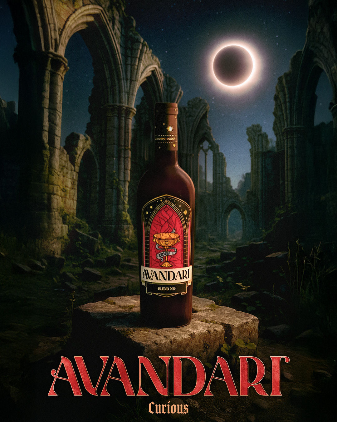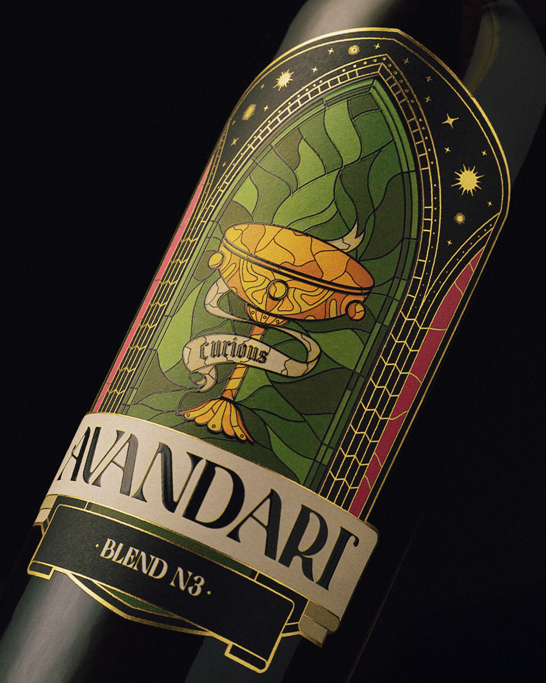 Avandari Curious is , well, Curious. It blends different types of wines, to get new and exciting tastes. Curious does not just play by the rules - it bends the rules to its will to venture into the unknown, To alchemise new concoctions and quench the thirst for insatiable curiosity. The design is a curious variation on Avandari - The window now looks into the unknown universe(hence the stars on the top) and at its center stands a golden goblet - as the symbol of its magical properties.